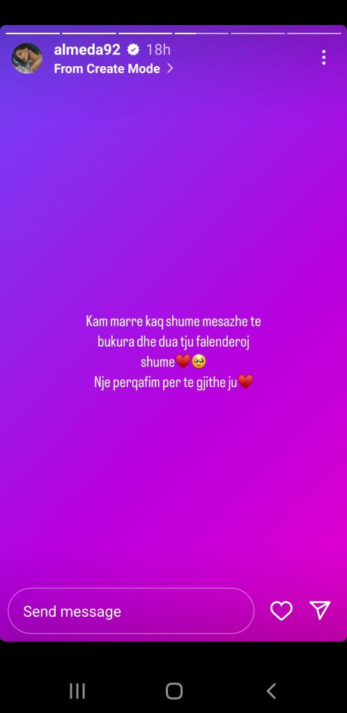 Pasi bëri publike historinë në fjalë, duket se reagimet e ndjekësve të saj kanë qenë të shumta. Këtë e ka zbuluar vetë Almeda përmes një postimi në “Instastory”.
