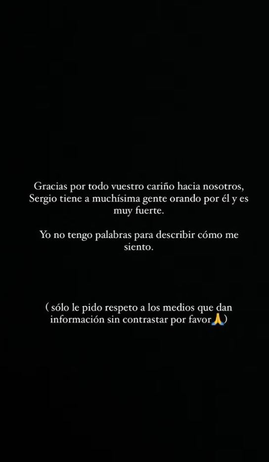 “Faleminderit për të gjithë dashamirësinë tuaj ndaj nesh. Serxhio ka shumë njerëz që e mbështetin dhe është shumë i fortë. Unë nuk kam fjalë për të thënë se si ndjehem”, shkruante ajo. Gazetarja spanjolle më pas u lutej mediave që të mos publikonin lajme të pakonfirmuara për gjendjen shëndetësore të bashkëshortit të saj.