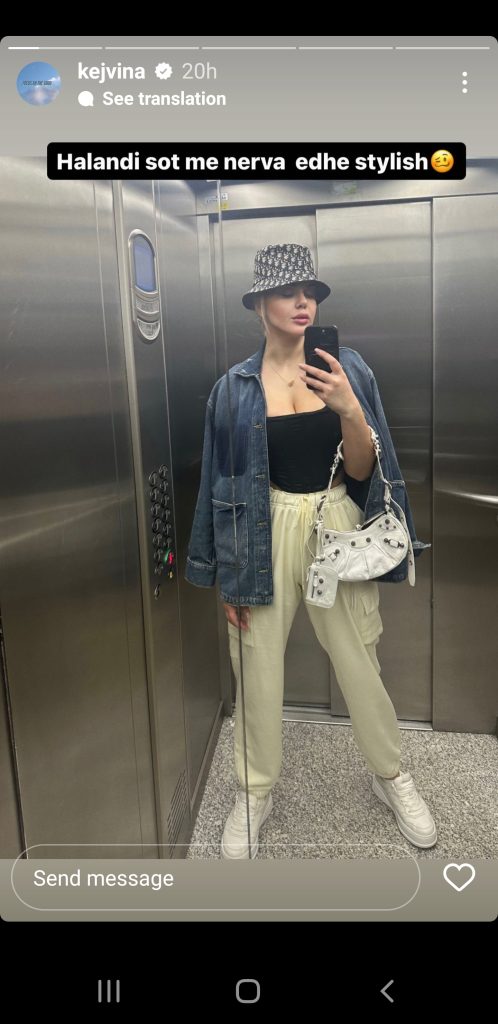 Së fundmi ajo postoi një foto ku shfaqej në ashensor dhe shkruante: “Halandi sot me nerva edhe stylish”.