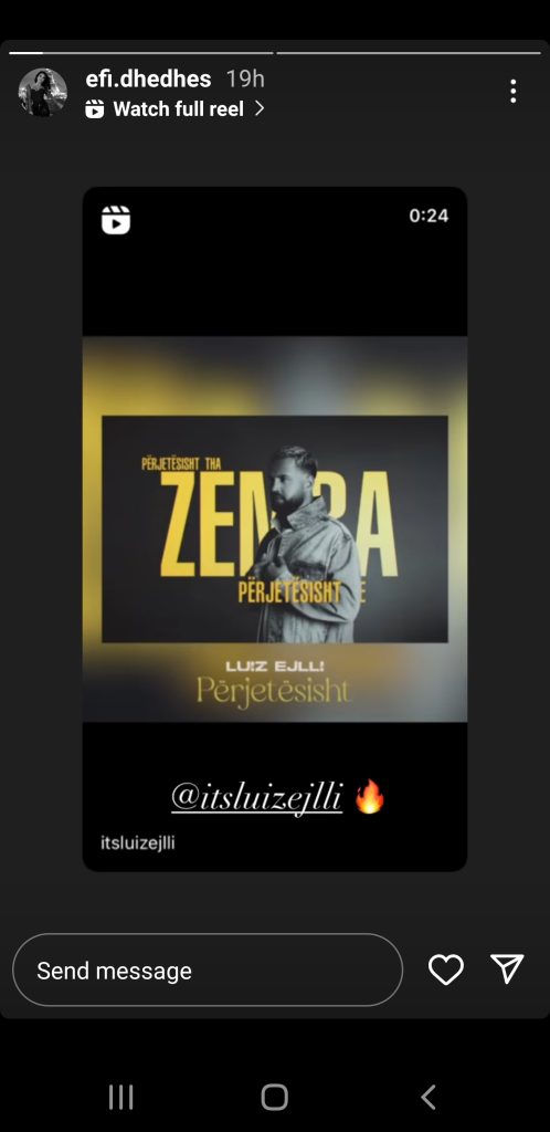 Efi i bëri “tag” Luizit e madje e shoqëroi me një emoji në formë zjarri, si për të thënë: Kënga ishte zjarr.