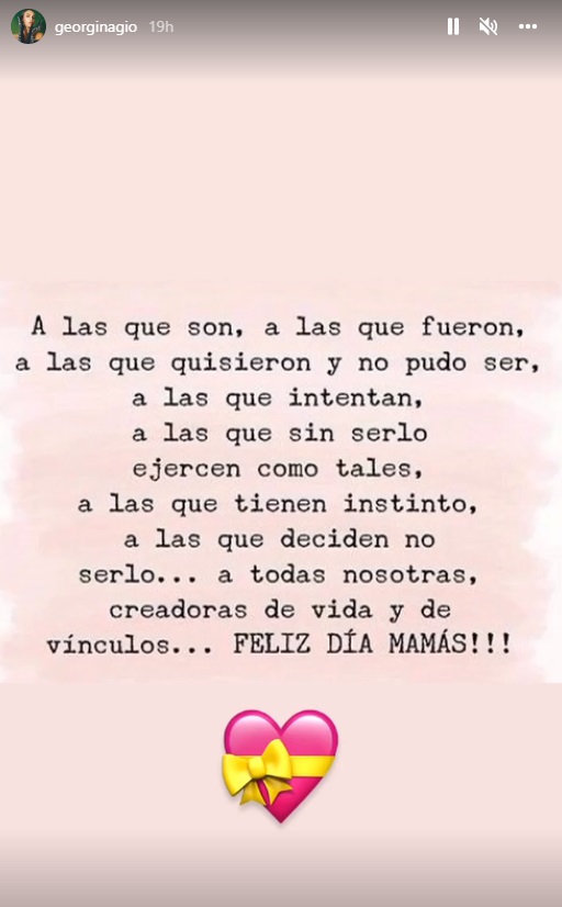 “Atyre që janë, atyre që ishin, atyre që deshën dhe nuk mundën, atyre që përpiqen, atyre që pa qenë kështu veprojnë si të tillë, atyre që kanë instinkt, atyre që vendosni të mos jemi… të gjithë ne, krijues të jetës dhe lidhjeve… gëzuar ditën e nënës.”