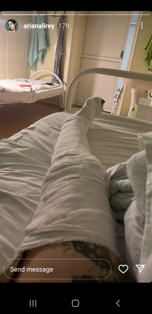 Gjendjen e saj e bëri të ditur vet ajo përmes një InstaStory ku shihet se këmbën e djathtë e ka vendosur në allçi.
