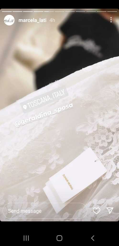 Por një detaj është zbuluar. Ai i fustanit. Nga “Geraldina Sposa” pjesë e koleksionit të dizanjerit të njohur libanez, Zuhair Murad.