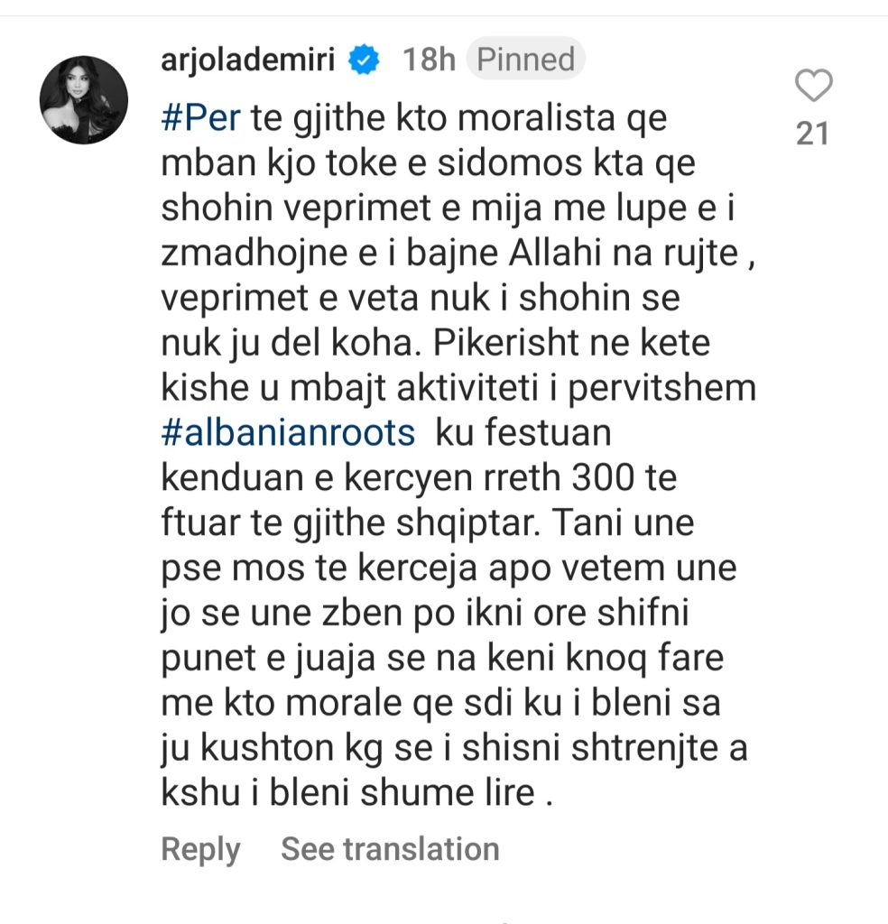 Një reagim nuk ka munguar as nga Arjola e cila thotë se njerëzit duhet të shohin punën e tyre e mos ti shesin moral.