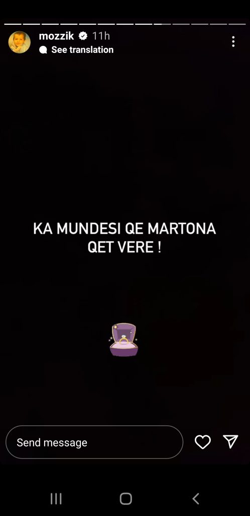 Mbrëmjen e sotme, Mozzik ka postuar disa story të papritura ku thotë se këtë verë ka mundësi të martohet, por pa zbuluar me kë.