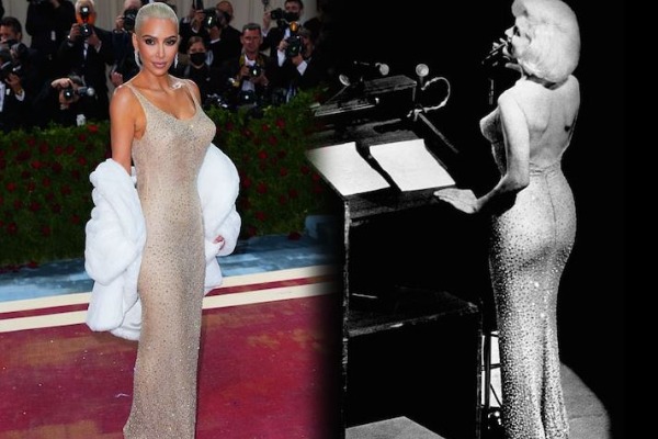 Kardashian huazoi fustanin e Monroe nga Ripley’s Believe It or Not! muzeu, i cili bleu “fustanin më të shtrenjtë në botë” të dizajnuar nga Jean Louis për 4.8 milionë dollarë në vitin 2016. Si i tillë, Ripley’s nuk do ta lejonte Kardashian të ndryshonte veshjen, duke e bërë atë të ndryshonte veten me dietë dhe stërvitje ekstreme.