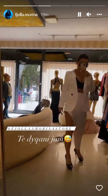 Tek përshkrimi i fotos, Morina shkruan “Tek dyqani jam”.