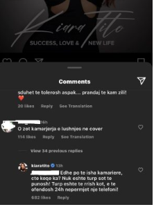 “Edhe po të isha kameriere ç’të keqe ka? Nuk është turp sot të punosh! Turp është të rrish kot, e të ofendosh 24 orë nëpërmjet një telefoni”, i shkroi Kiara.