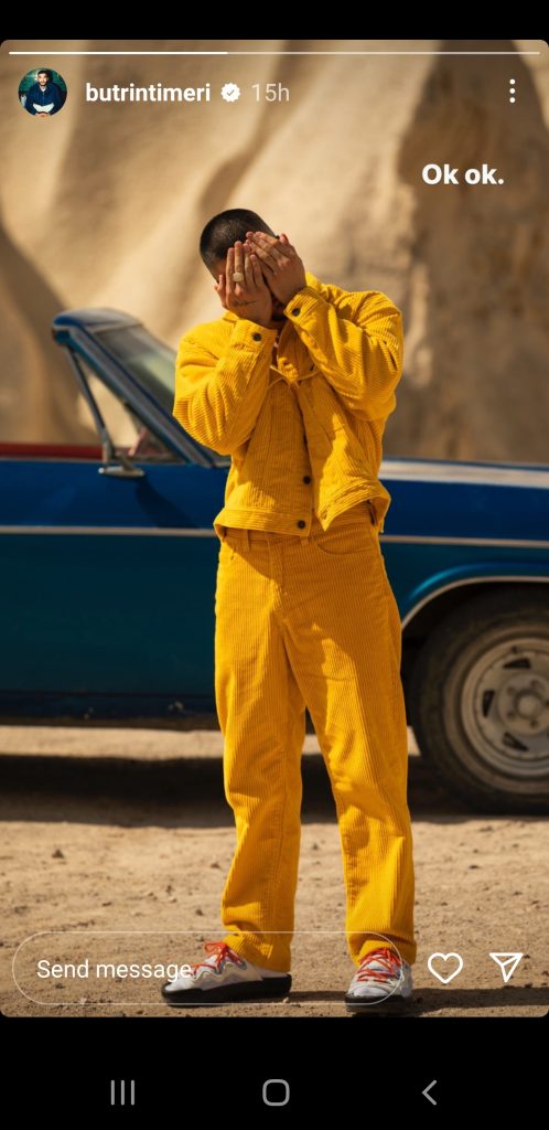 Ndërkohë pak më parë ka qenë Butrinti që duket se ka reaguar edhe ai për gjithë situatën, teksa me një foto ku ka mbuluar fytyrën me duar, sikur nuk do ta shohë ca shkruhet, thotë edhe: Ok, ok!