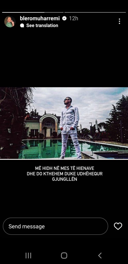 Ai ka postuar një fotografi në InstaStory, sipër të cilës ka shkruar: “Më hidh në mes të hienave dhe do të kthehem duke udhëhequr xhunglën”.