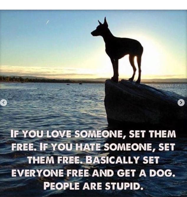 “Nëse e do dikë lëre të lirë. Nëse e urren dikë lëre të lirë. Lëri të gjithë të lirë dhe merr një qen, njerëzit janë budallenj”- shkruhet në foton e publikuar.