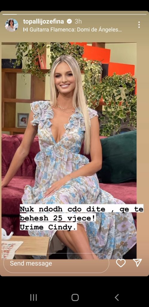 Përmes një “story” në “Facebook”, Jozefina uroi Cindyn në këtë ditë kaq të rëndësishme, jo vetëm për atë, por për të gjithë që janë afër ish-missit.