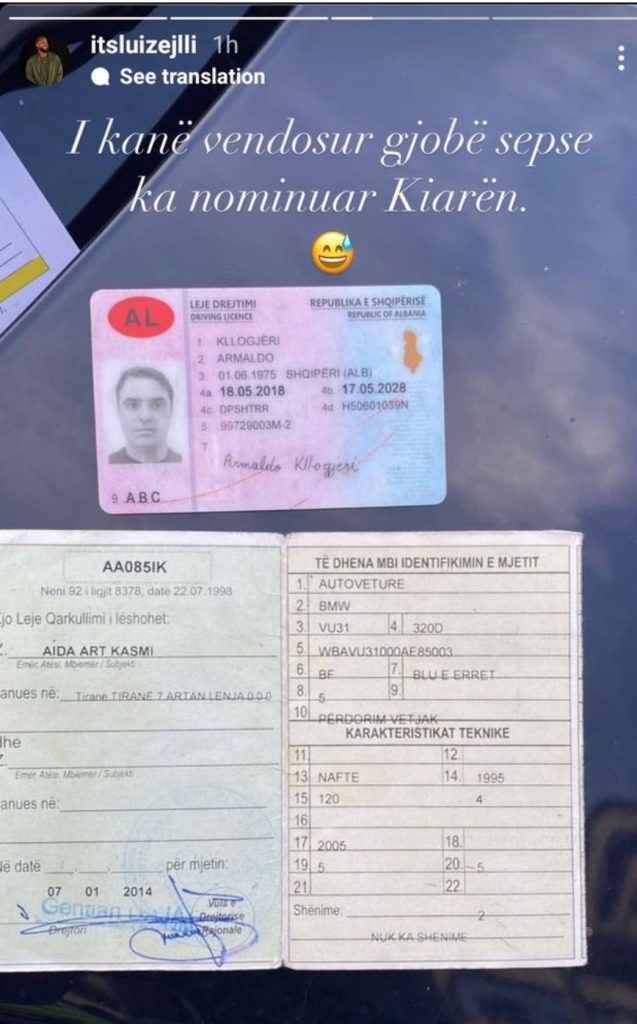 Mirëpo, një postim i bërë nga Luizi sot tregon të kundërtën. Ai ka ndarë me ndjekësit një foto të një gjobe bashkë me lejen e drejtimit të Maestros. Me humor shkruan krah saj: “I kanë vendosur gjobë se ka nominuar Kiarën”.