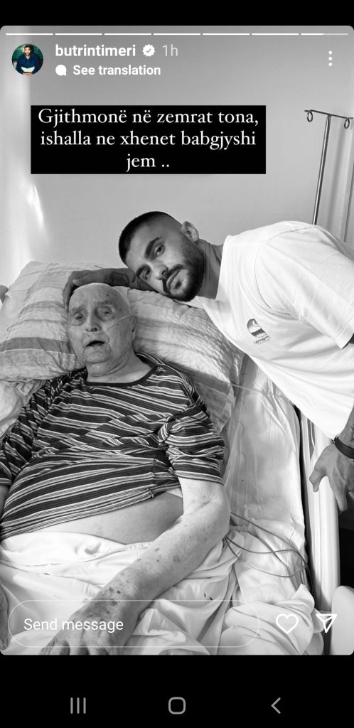Lajmin prekës e ka ndarë Butrinti duke publikuar një nga fotot e tyre nga takimet e fundit në spital ku gjyshi i tij po kurohej.