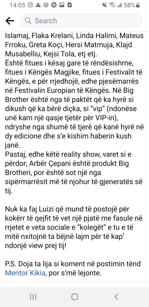 P.S. Doja ta lija si koment në postimin tënd Mentor Kikia, por s’më lejonte.