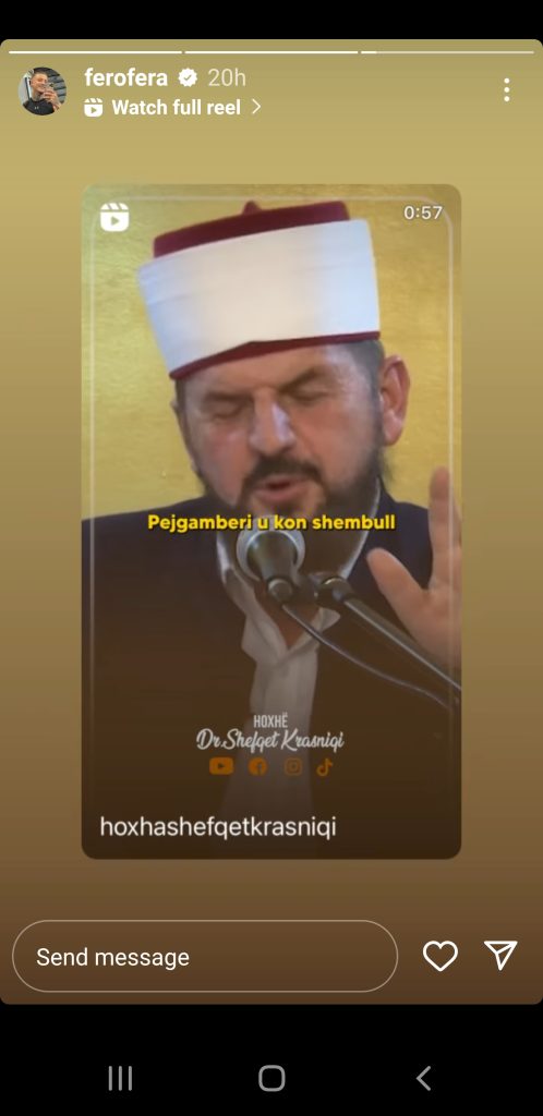 Në një postim në instastory, Fero ka thumbuar hapur Arbenitën.