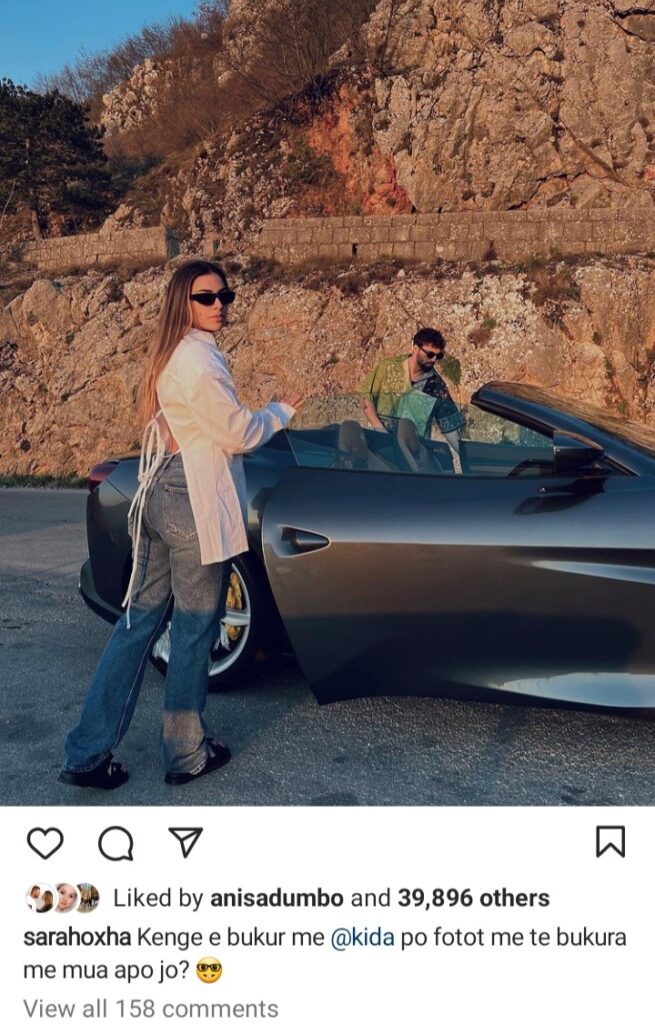 Ajo ka postuar një foto në rrjetet sociale, ku i drejton Ledrit pyetjen. “Kënga e bukur me Kidën po fotot më të bukura me mua apo jo?!”