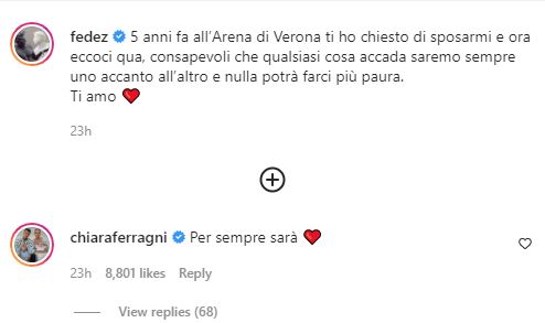 Ndërkohë, nuk ka munguar edhe komenti i Chiara Ferragnit. “Gjithmonë do të jetë”,- replikon ajo.