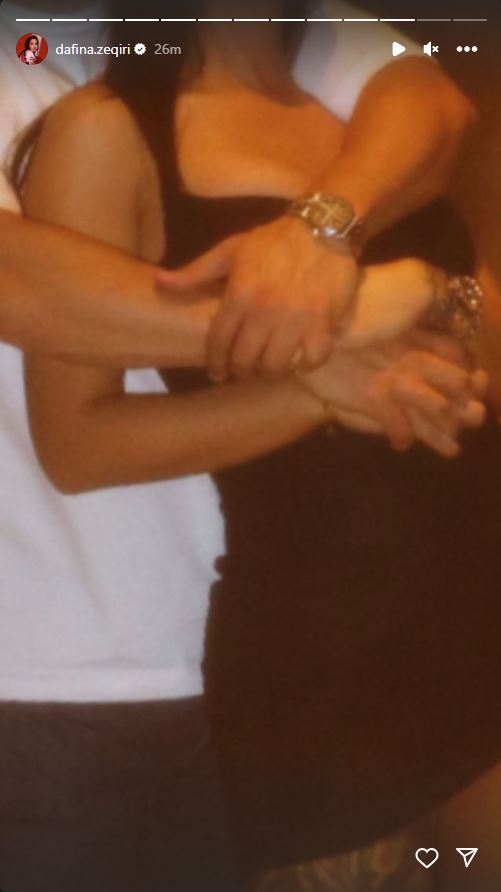 Dafina shfaqet në foto në krahët e biznesmenit, edhe pse nuk e ka publikuar fytyrën e tij.
