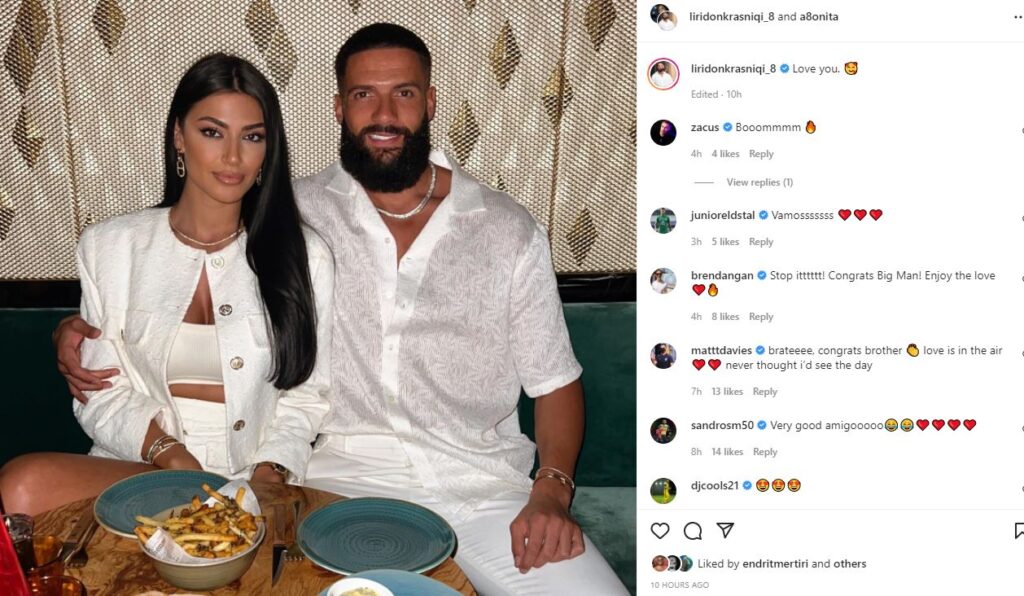 Krahas fotos Krasniqi ka vendosur mbishkrimin “Të Dua”, teksa ka marrë dhe komente të shumta pozitive nga ndjekësit e lojtarit.