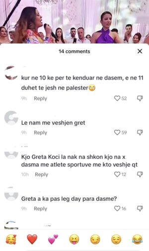 Edhe së fundmi ajo ka kënduar në një dasmë, nga ku janë ndarë video të shumta në rrjetet sociale. Mirëpo në këto video të ndara mbizotërojnë komentet negative mbi veshjen e Gretës.