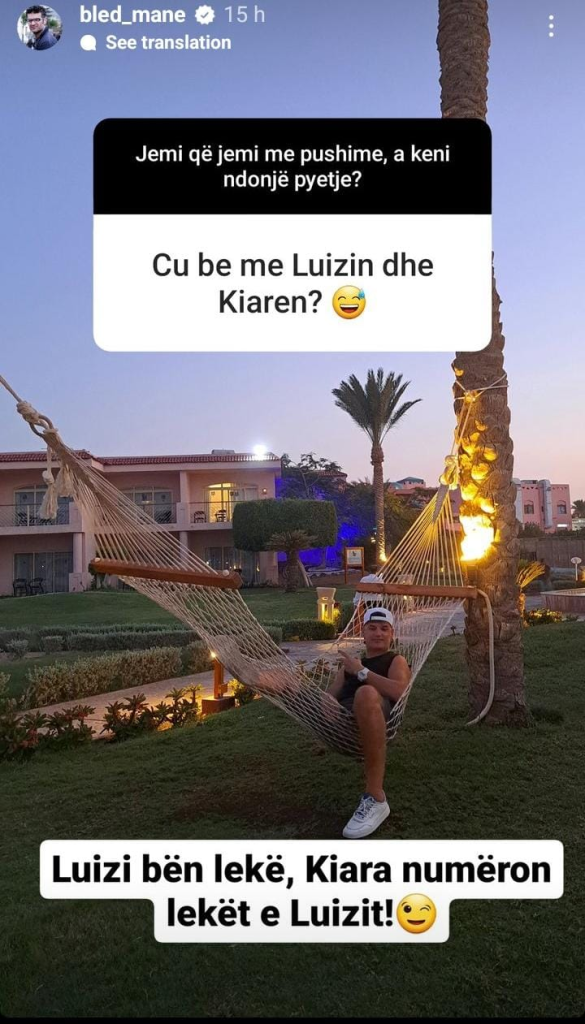 “Luizi bën lekë, Kiara numëron lekët e Luizit”– ka shkruar Bledi.