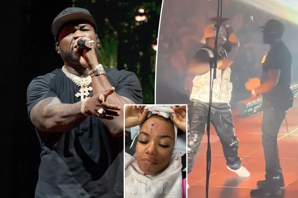 50 Cent goditi një gazetare në koncert me mikrofon gjatë turneut të tij në Crypto.com Arena.