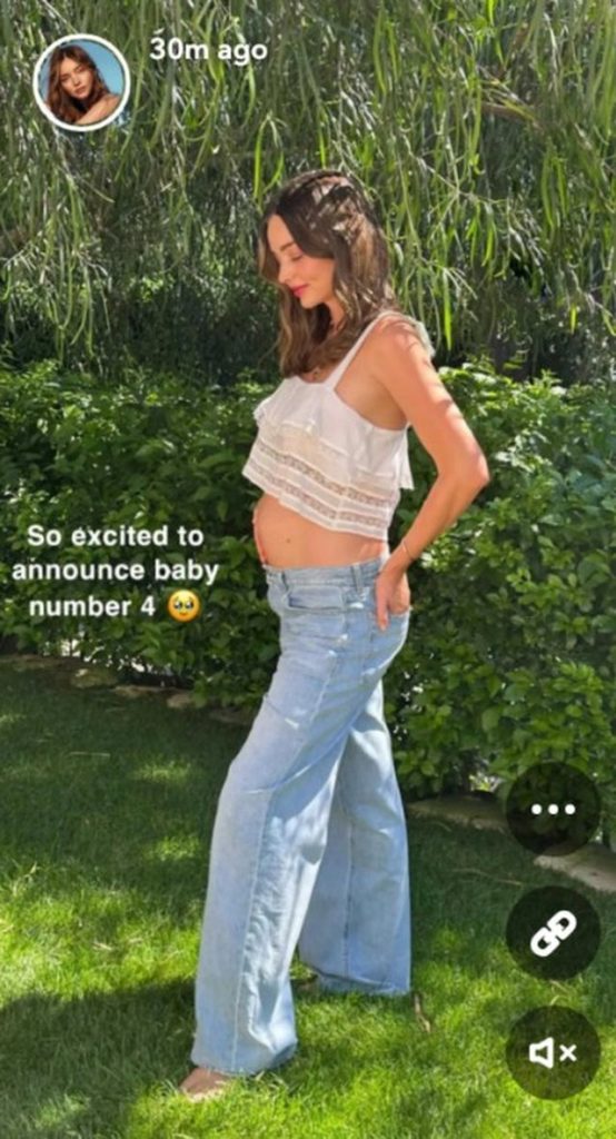Modelja e njohur e “Victoria’s Secret”, Miranda Kerr së shpejti do bëhet nënë për herë të katërt. Lajmin e ëmbël e ka bërë të ditur vetë 40-vjeçarja teksa postoi një foto në Snapchat duke treguar barkun e rrumbullakët.