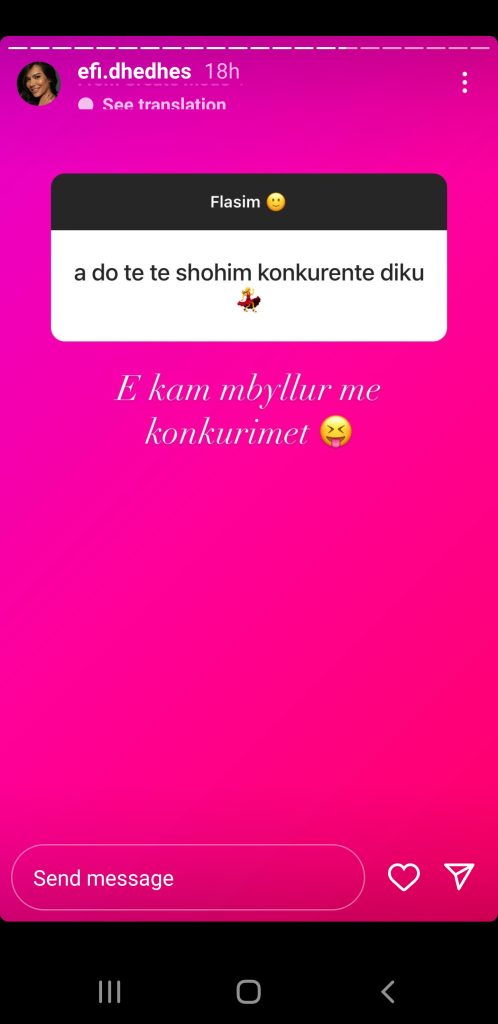 Gjatë një bisede të zhvilluar së fundmi me fansat e saj në Instagram, një ndër ta e ka pyetur Efin: ‘“A do të shohim konurrente diku?“, duke e shoqëruar në fund me një femër me fustan të kuq duke kërcyer, ndërsa Efi tregoi se nuk do të jetë pjesë e “DWTS”.