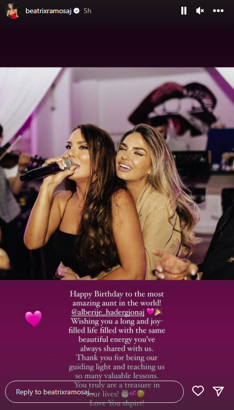 Në këtë ditë kaq speciale për të ajo mori urime të shumtë nga rrethi shoqërorë dhe nga familjarët e saj, mirëpo atë më të veçantin artistja e mori nga mbesa e saj, këngëtarja e njohur Beatrix Ramosaj.