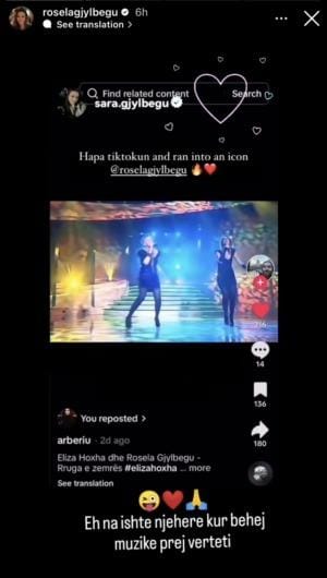 Mirëpo së fundmi teksa ka ripostuar në InstaStory një nga hitet e saj me Eliza Hoxhën të cilën një fanse e kishte publikuar, ndërsa krahas saj ajo ka ‘thumbuar’ këngëtarët e rinj.