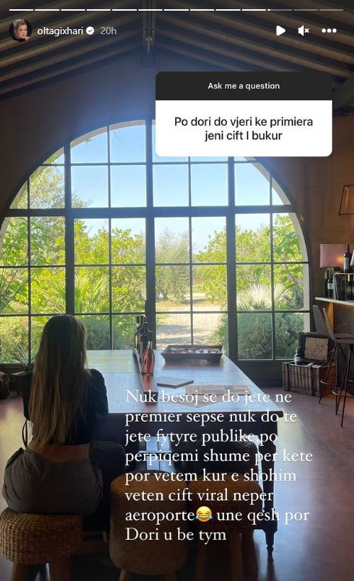 “Nuk besoj se do të jetë në premierë sepse nuk do që të jetë figurë publike, po përpiqemi shumë për këtë, por vetëm kur e shohim veten çift nëpër aeroporte. Unë qesh por Dori u bë tym”, shkroi ajo.