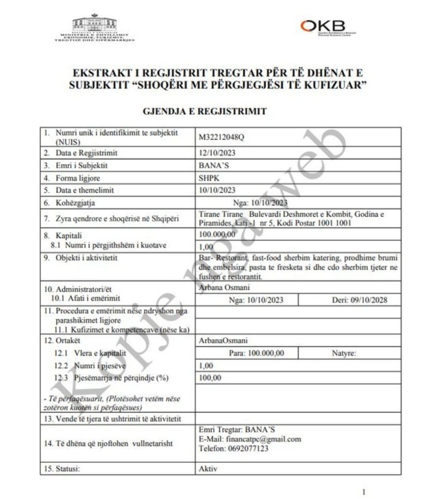 Prezantuesja e njohur, Arbana Osmani, ka edhe një biznes privat nën administrim.