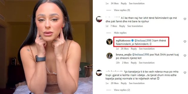 Së fundmi në një video që ka postuar, Eglit i është bërë një pyetje dhe sërish ajo nuk ia ka kursyer përgjigjen.