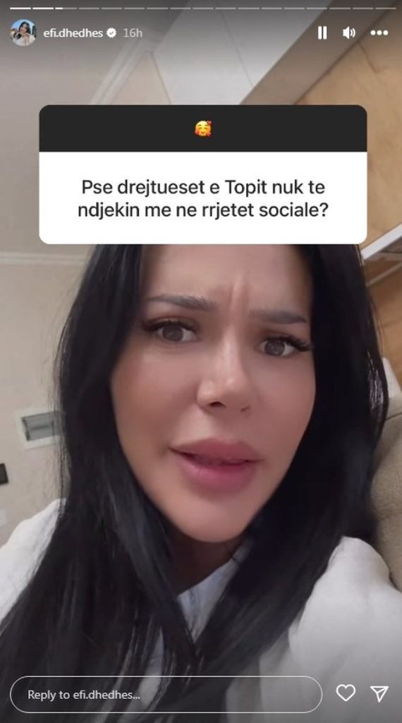 Efi Dhedhes nuk u nda mirë me drejtuesit e Top Channel dhe ata tani nuk e ndjekin më as në Instagram. Së fundmi ndjekësit i kanë vënë në dukje Efit këtë fakt dhe ajo nuk ka ngurruar ta postojë.
