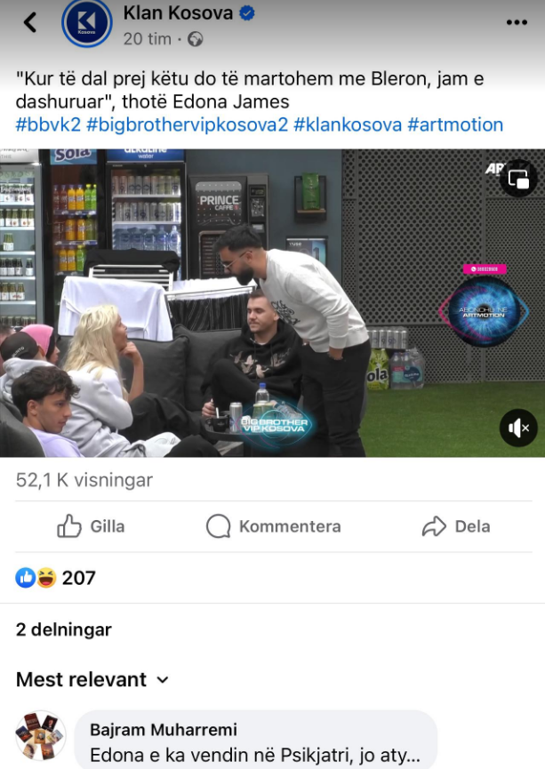 “Edona e ka vendin në Psikjatri, jo aty…” shkroi ai.