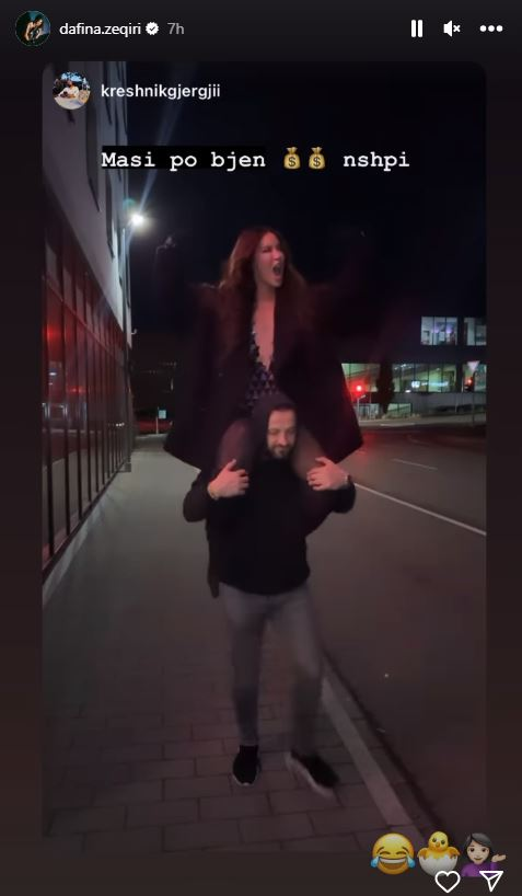 Së fundmi artistja ka rpostuar në InstaStory një video romantike me të dashurin e saj i cili pas koncertit e mbante atë shpinë.