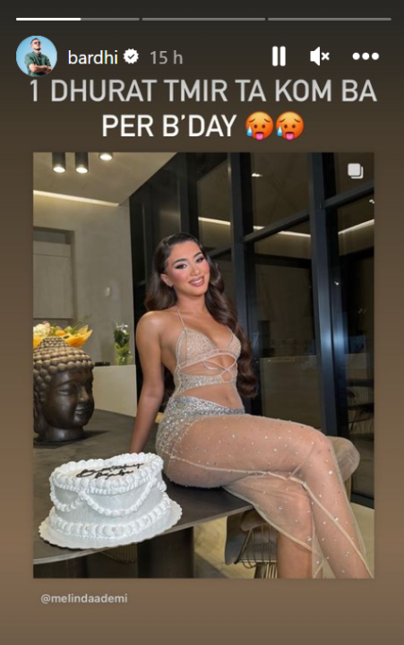 Këngëtari ka ndarë një postim të Melindës në prifilin e tij në Instastory dhe bashkangjitur ka shkruar: “Një dhuratë të mirë ta kam bërë për ditëlindje”.