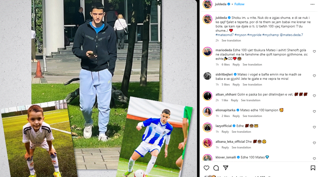 “Shoku im, u rrite. Nuk do e zgjas shumë, e di se nuk i ke qejf fjalët e tepërta, por di të them se jam babai më krenar në botë, që kam një djalë si ti. U bëfsh 100 vjeç Kampion! T’du shumë!”- ka shkruar Juli krahas fotos së të birit.