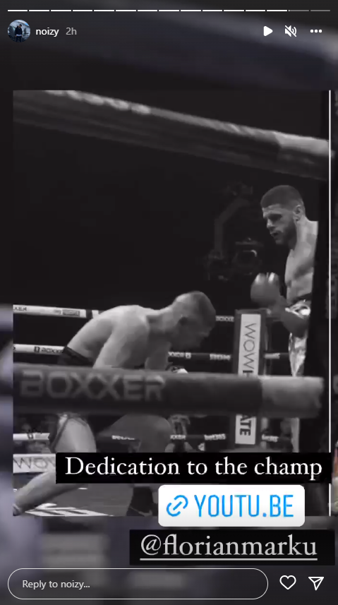 Floriani falënderoi reperin publikishit duke publikuae një Instastory, ku shkroi se Noizy është reperi më i mire i të gjitha kohërave i kushtoi atij këngë. Noizy nuk vonoi dhe ripostoi Storyn e boksierit duke i thënë se kjo është një dhuratë për të.