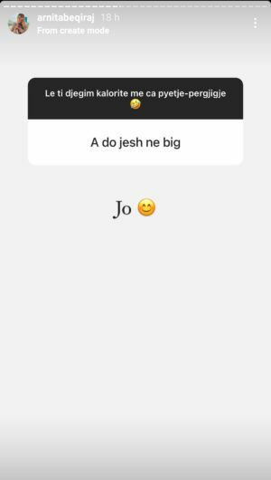 E pyetur nga një ndjekës nëse do t’i bashkohet reality show, Arnita tha: “JO”.