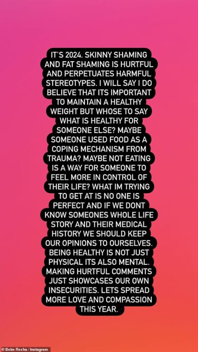 “Është viti 2024. Turpi nga një trup i hollë dhe nga një trup i shëndoshë është i dëmshëm dhe përjetëson stereotipe të dëmshme”.