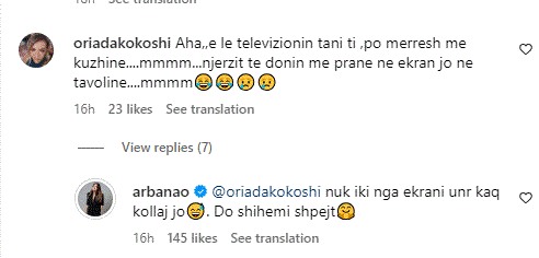 “Aha, e le televizionin tani ti, po merresh me kuzhinë….mmmm…njerzit të donin me pranë në ekran jo në tavolinë….”- ka shkruar ndjekësja.