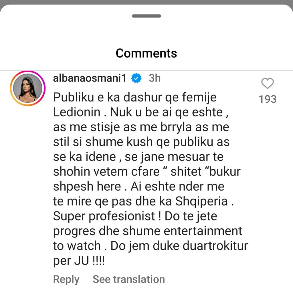 Moderatorja Albana Osmani ka komentuar duke u shprehur që Ledioni do të bëjë një progres për këtë reality show.