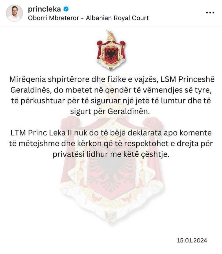 Princ Leka thekson se mirëqenia e vajzës së tyre do të mbetet në qendër të vëmendjes.