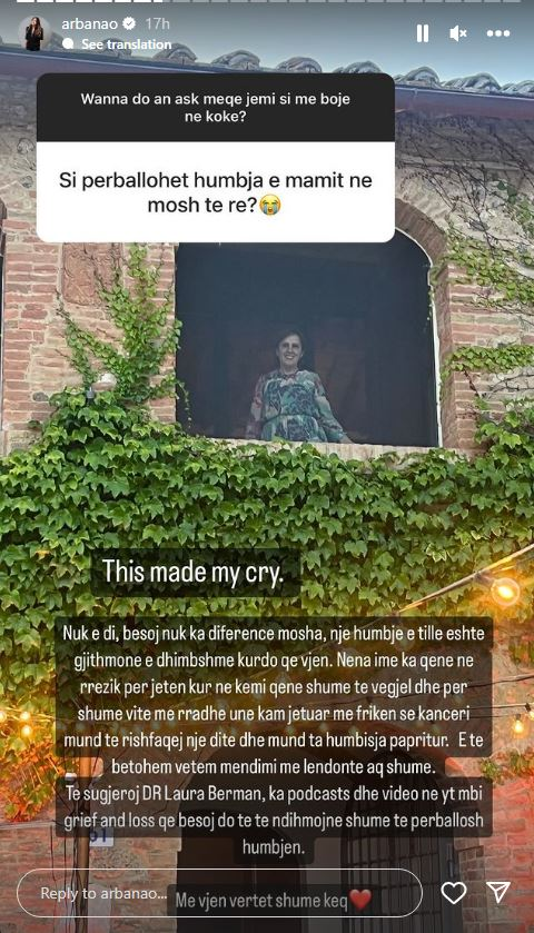 Së fundmi ajo ka zhvilluar një bisedë virtuale me ndjekësit e saj në Instagram, ndërsa një ndër ta ka shkruar: “Si përballohet humbja e mamit në moshë të re?”
