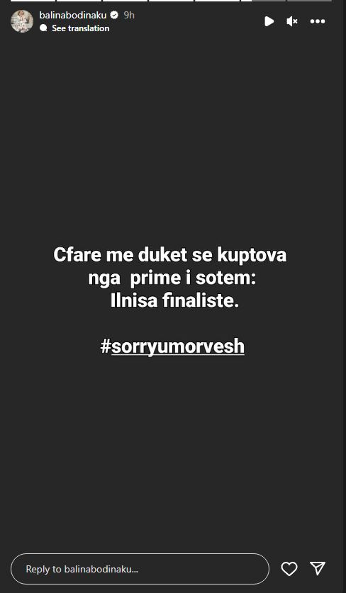“Çfarë më duket se kuptova nga prime i sotëm, Ilnisa finaliste. Më vjen keq u mor vesh.”– ka shkruar ajo.