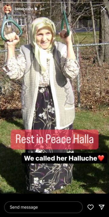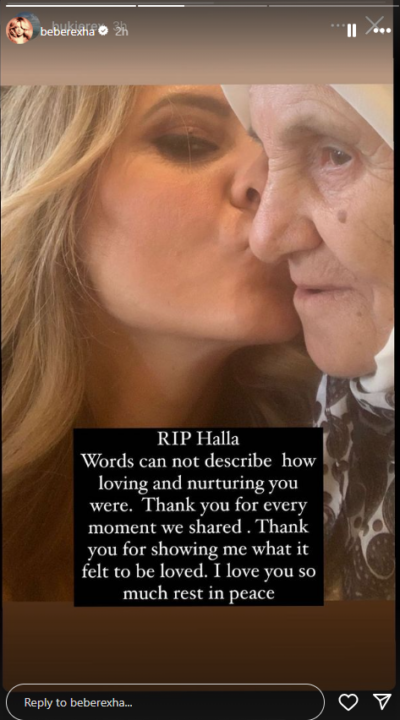 Këngëtarja e famshme shqiptare, Bebe Rexha, ka zbuluar përmes një postimi në rrjetet sociale se ka humbur një person të shtrenjtë. Ajo ka ndarë me ndjekësit një fotografi në “Instastory”, ku tregon se halla e saj ka ndërruar jetë.