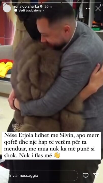 “Nëse Erjola lidhet me Silvin, apo merr qoftë edhe një hap të vetëm për ta menduar, me mua nuk ka më punë si shok. Nuk i flas më”, ka shkruar Ronaldo në postimin që e ka shoqëruar me një foto ku dy banorët janë duke u përqafuar.