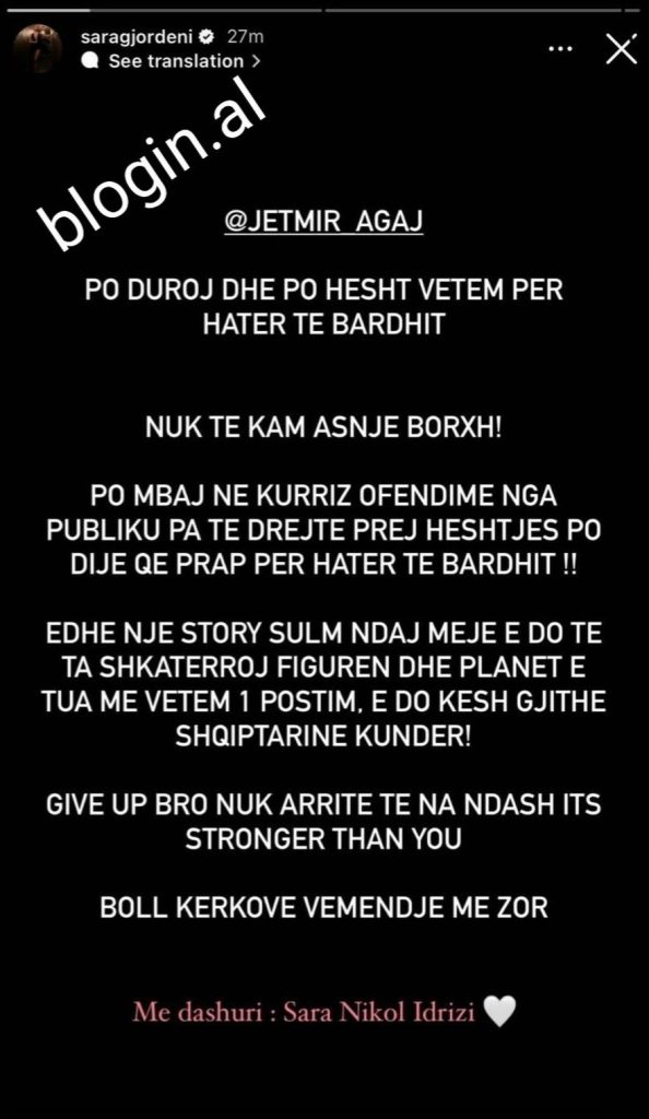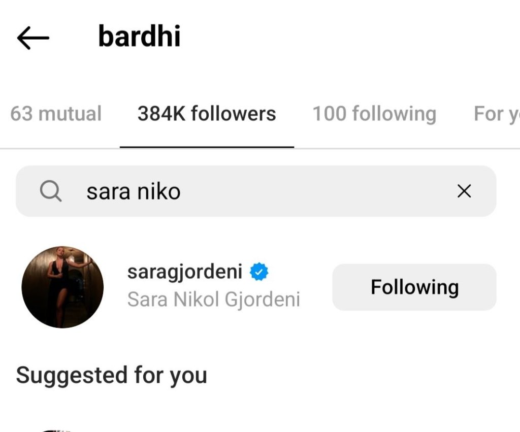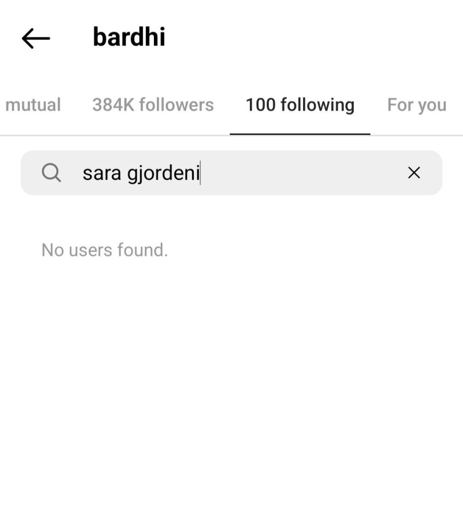Pak ore me pare ish konkurrentja e Big Brother Vip 3 Sara Gjordeni postoi nje story ne llogarine e saj ne instagram duke leshuar nje sere akuzash kundrejt menaxherit te Bardhit. Mirepo pas disa minutash ajo e fshiu ate story duke shtuar akoma nje konfuzion se cfare po ndodh mes tyre dhe si qendron e verteta. Pervec kesaj llogaria e Instagramit te Bardhit nuk ndjek Saren por e kunderta eshte me Saren. Ne nje kerkim te thjesht Sara e ndjek Bardhin dhe gjithashtu ka foto se bashku..